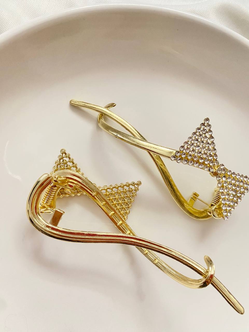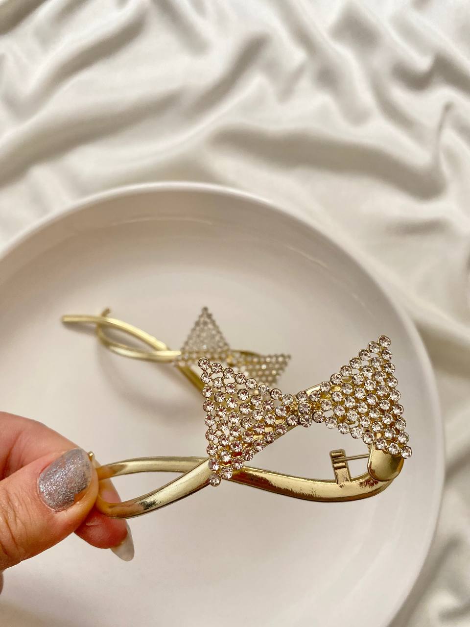 گیره مو زنانه مدل چفتی پاپیون نگینی