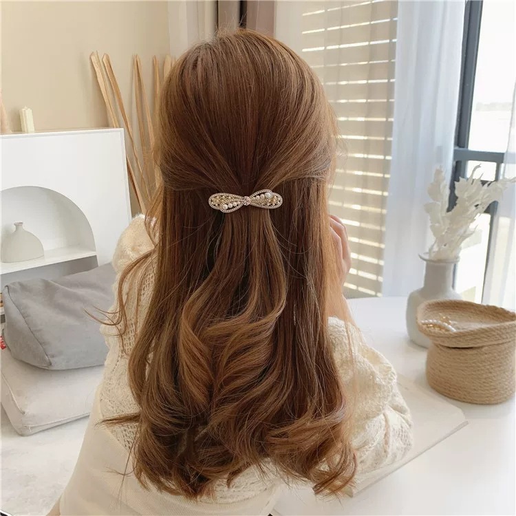 گیره مو فرانسوی روبانی نگین و مرواریدی
