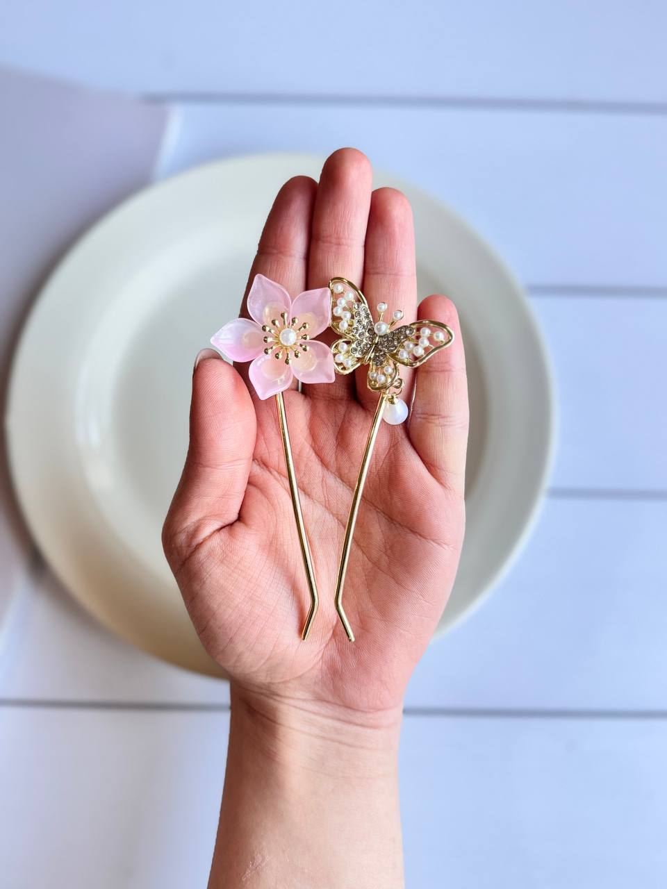 کانزاشی دو شاخه طرح گل و پروانه آویزدار ZAYA
