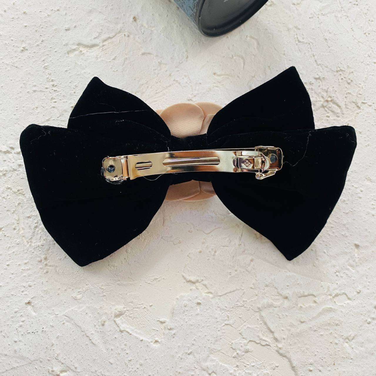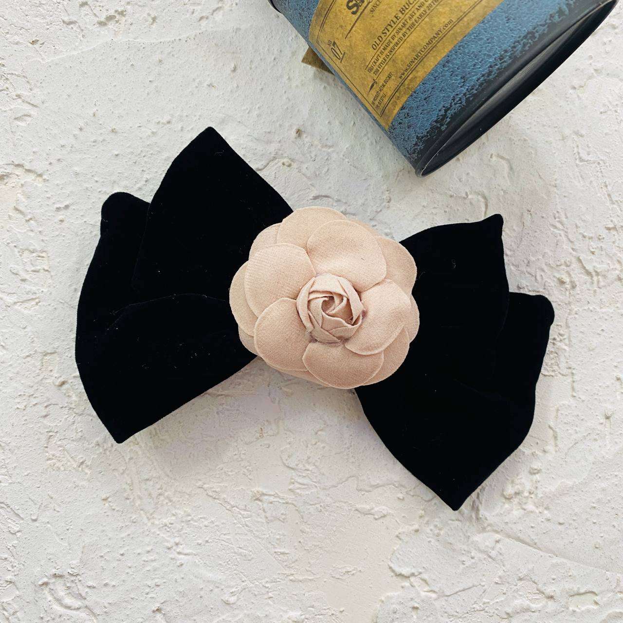 گیره مو فرانسوی مخملی مشکی طرح گل رز